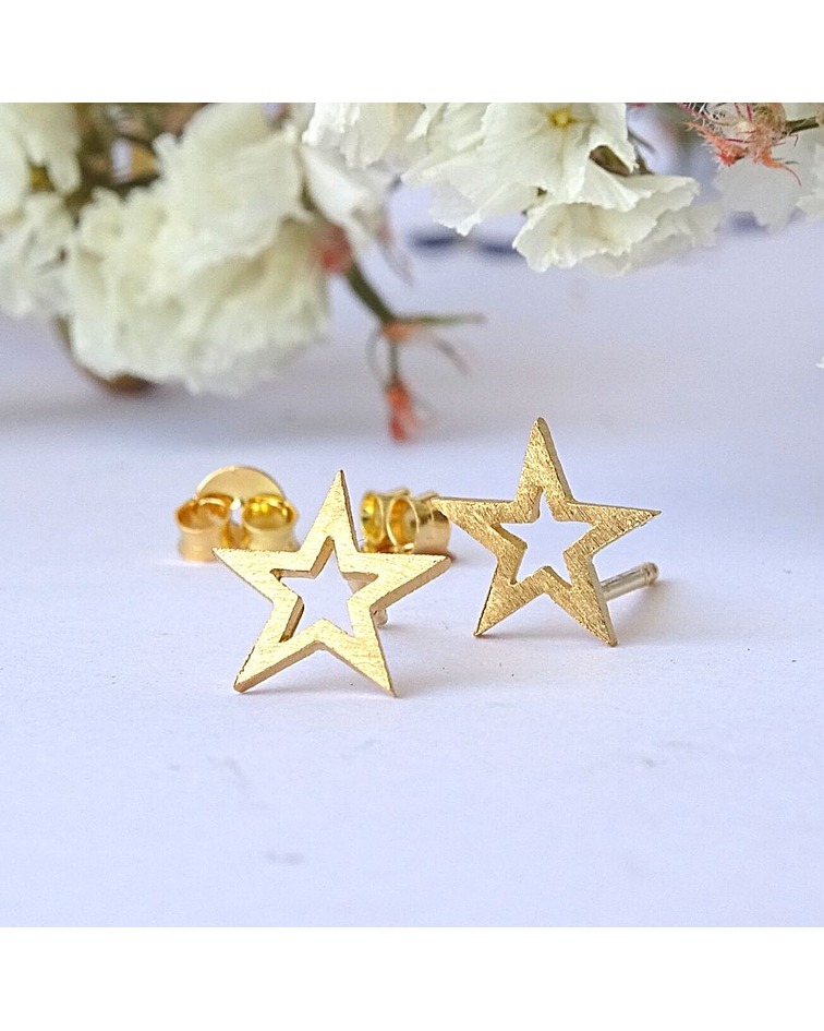 Aritos De Plata con baño de Oro Estrellas Abiertas