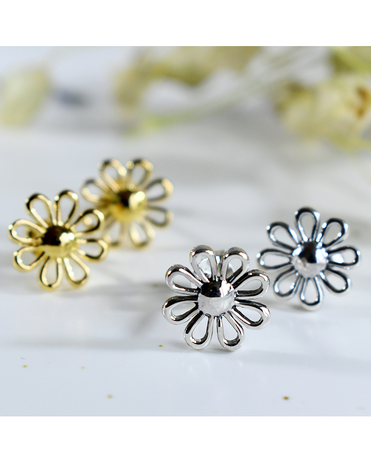 Hermosos aros con diseño de Margarita, son super lindo, femeninos y delicados, su diseño es atemporal así que puedes usarlo en cualquier momento del dia, ideales para un estilo casual.