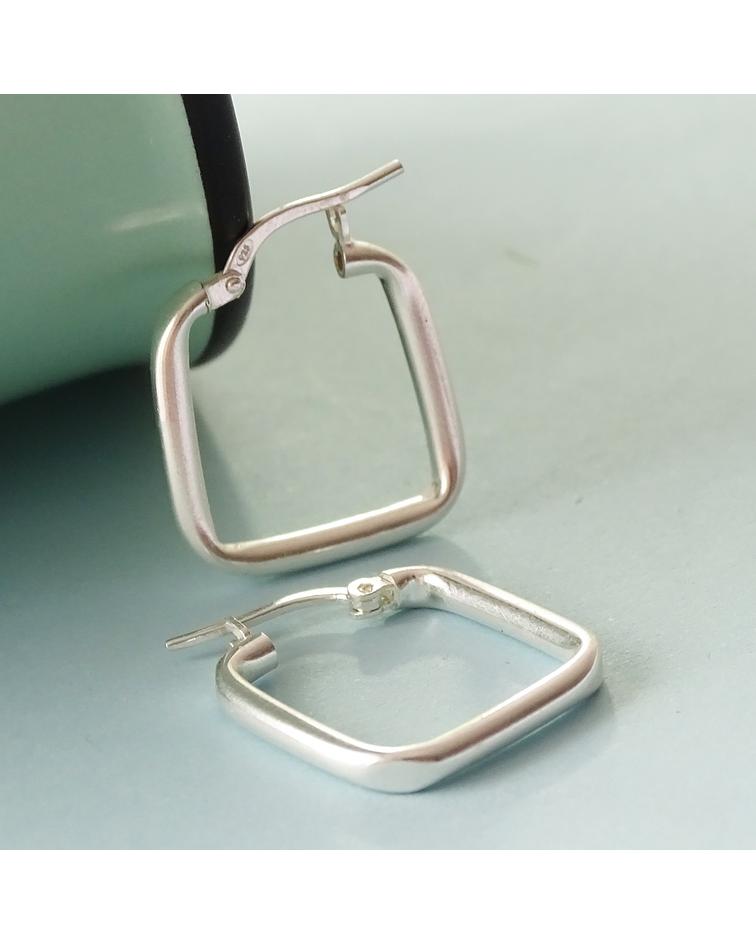 Aros De Plata 925 Argollas Cuadradas