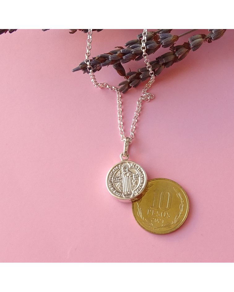 Nuestra cadena modelo Rollo es de alta calidad y está diseñada para durar. Y combinada con nuestro colgante de San Benito en plata, es una combinación perfecta de protección y estilo. ¡Es el accesorio perfecto para agregar un toque de elegancia a cualquier atuendo!