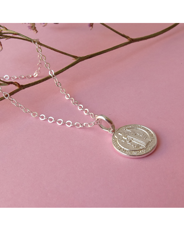 Nuestra cadena modelo Rollo es de alta calidad y está diseñada para durar. Y combinada con nuestro colgante de San Benito en plata, es una combinación perfecta de protección y estilo. ¡Es el accesorio perfecto para agregar un toque de elegancia a cualquier atuendo!